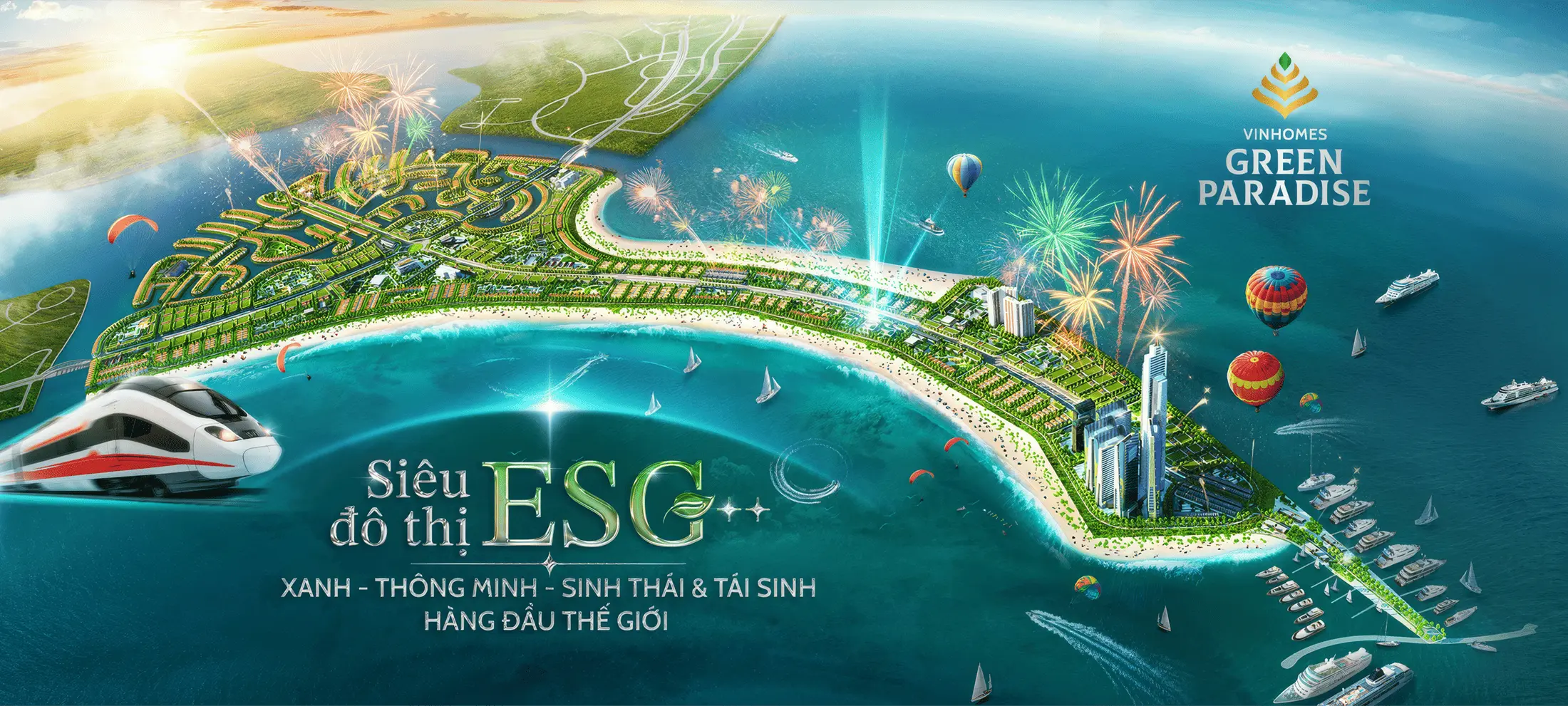 Vinhomes Green Paradise là siêu đô thị lấn biển đầu tiên tại Việt Nam, được phát triển trên tổng diện tích 2.870 ha tại Cần Giờ – vùng đất duy nhất của TP. Hồ Chí Minh tiếp giáp với biển. Với tổng vốn đầu tư lên tới 10 tỷ USD, Vinhomes Green Paradise Cần Giờ được định hướng trở thành đô thị ESG (Môi trường – Xã hội – Quản trị) xanh, thông minh và sinh thái hàng đầu thế giới, quy tụ 230.000 cư dân và thu hút 8-9 triệu lượt khách du lịch mỗi năm.