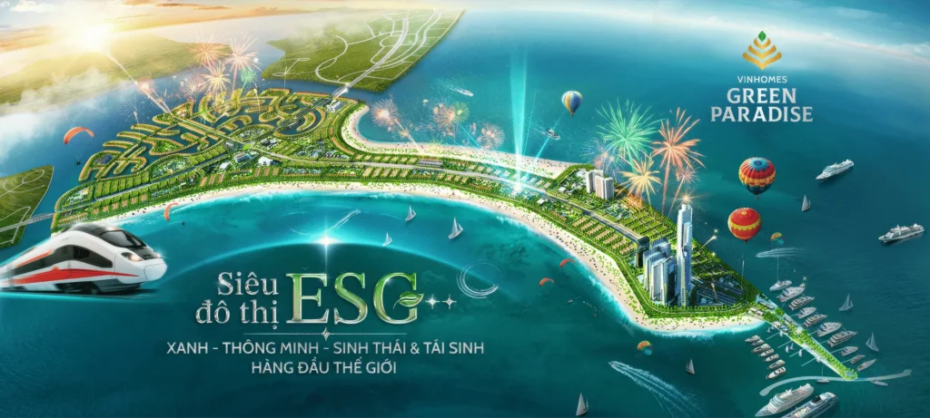 Vinhomes Green Paradise mở ra cơ hội hiếm có cho gia đình Việt sở hữu tài sản tại đô thị ESG tiên tiến nhất châu Á – nơi ba trụ cột “Xanh – Thông minh – Sinh thái” mang đến cuộc sống lý tưởng và lợi nhuận đầu tư vượt trội. Với tổng vốn đầu tư 10 tỷ USD, Vinhomes Green Paradise định hình chuẩn mực sống mới cho cả khu vực.
